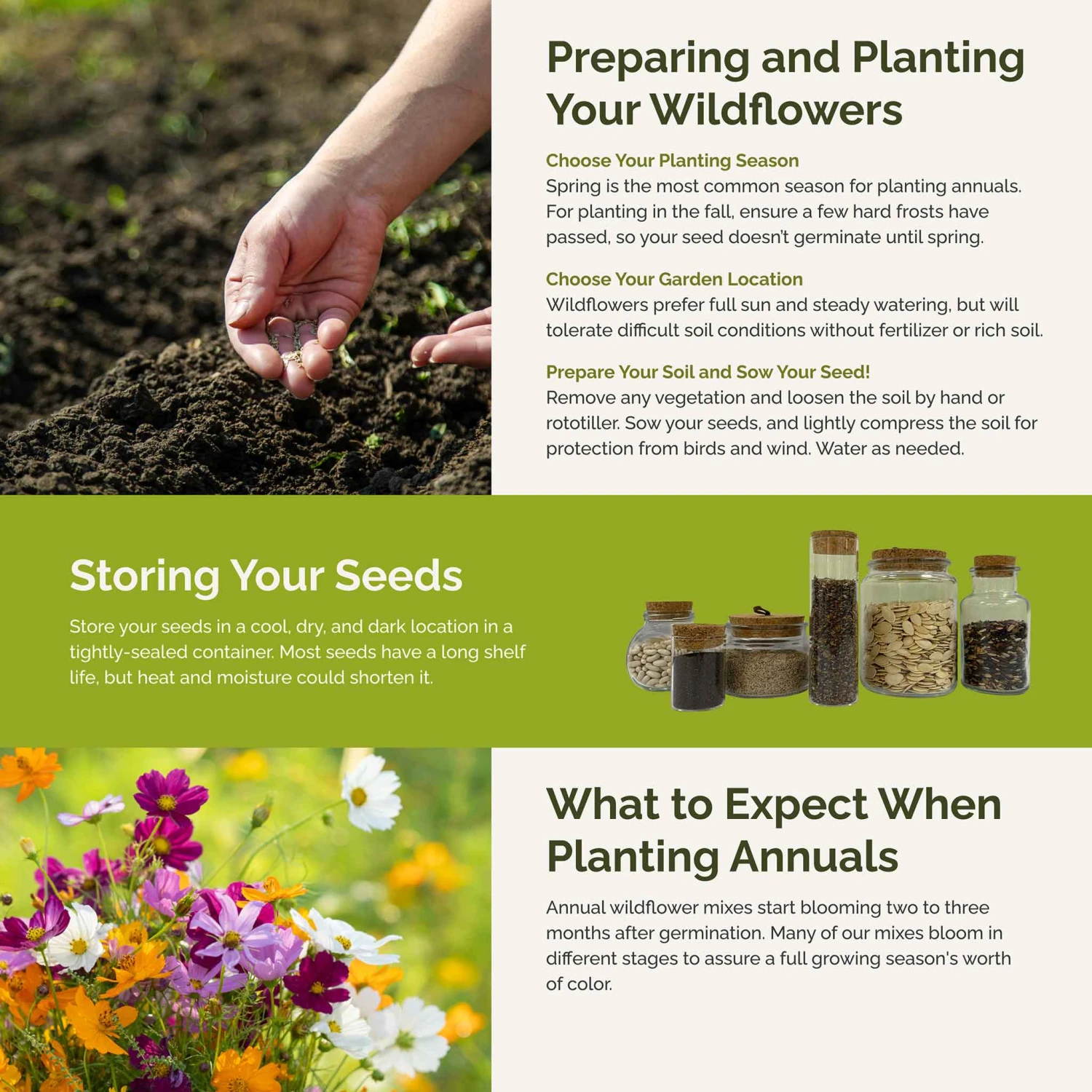 Don’t let the snobs at the local garden club try to scare you away from annuals! Though it’s true that they typically require re-seeding each year, annual wildflowers also tend to be amongst the most colorful – and easy to grow – of all the wildflowers. This mix is packed with 20 of the most popular varieties and will dazzle you with a succession of colors throughout the season. Suitable for all regions of North America.
