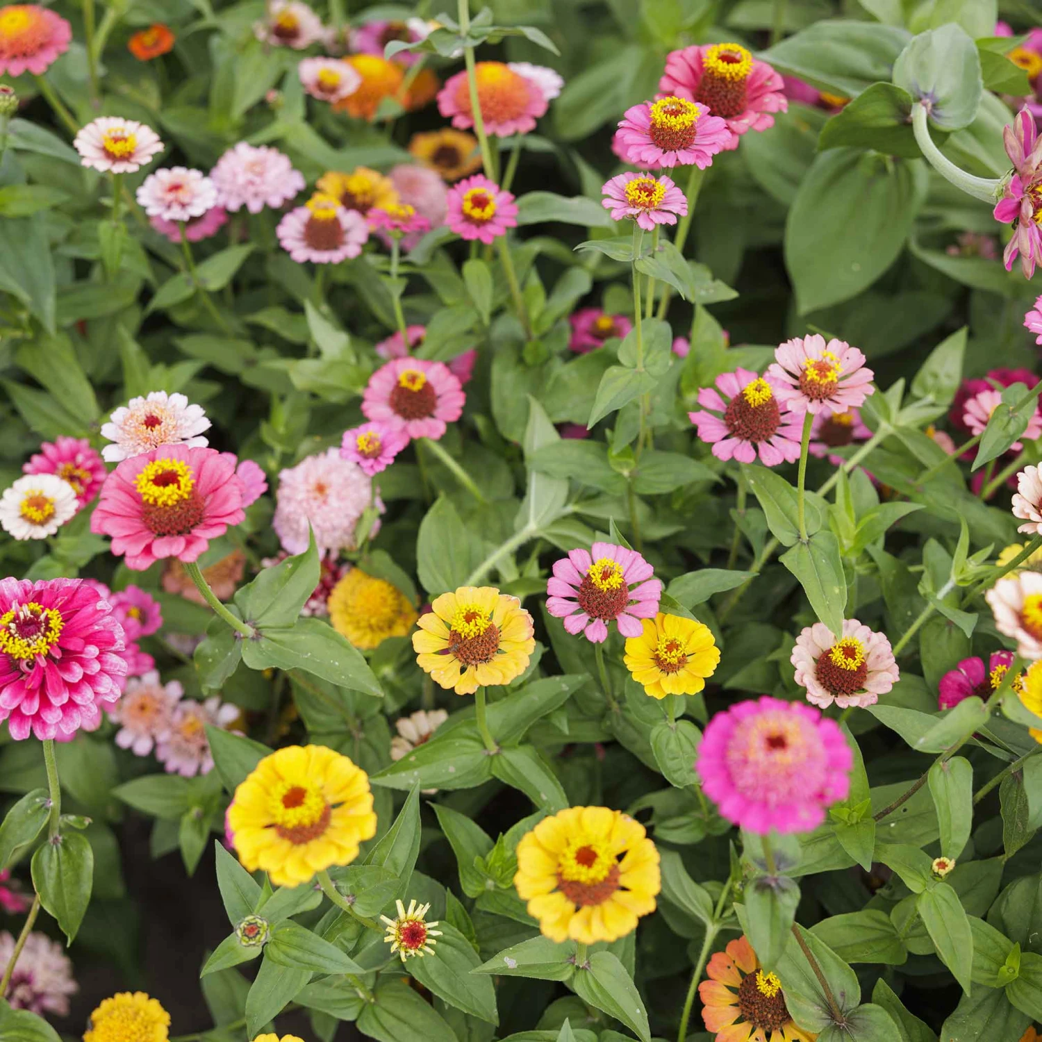 A vibrant mix of uniquely textured blooms, sure to create interest and dimension in your garden or in a vase! Scabiosa Flowered Zinnias bloom in the summer, thriving in full sun and warm weather. This particular species of Zinnia does best when planted in soil amended with nutrient-rich compost and treated with a bloom-boosting fertilizer while growing.
